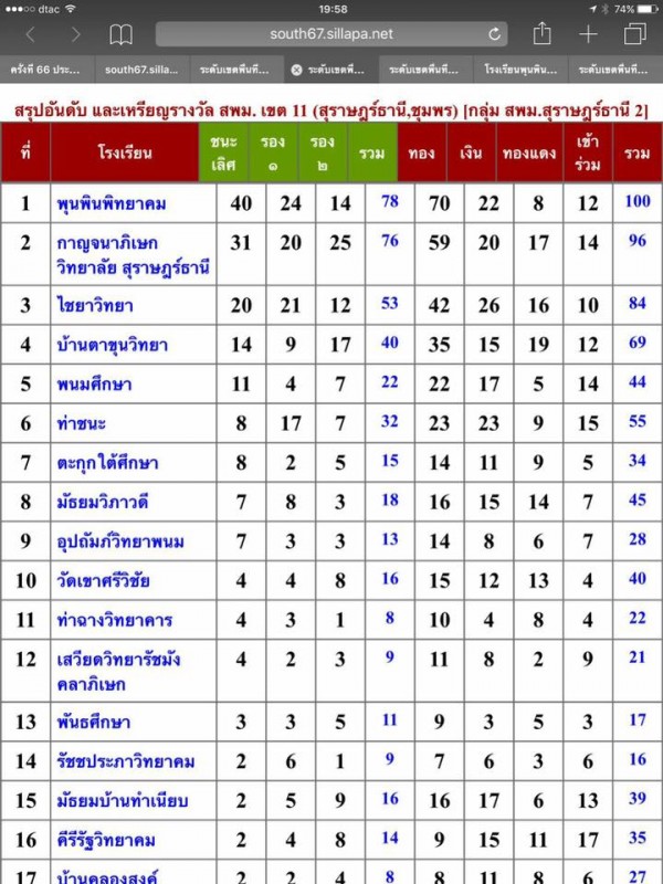 ได้เข้าร่วมเเข่งขันต่อในระดับภาคใต้ จำนวน ๔ รายการ เเละอยู่ในลำดับที่ ๑๑