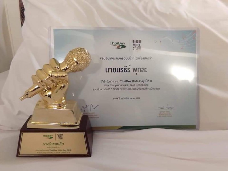 ขอแสดงความยินดีกับรางวัลชนะเลิศการประกวดร้องเพลง ThaiBev Kids day ปี8